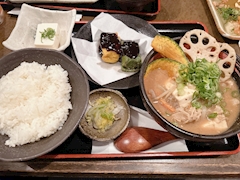 ♡ こんばんは🌙 まふゆです☃️🤍 先日は前の職場の同僚とご飯に行きました🍚 豚汁と生麩田楽の定食🍱生麩田楽美味しくて好きです🫶🏻思った以上に豚汁が大きくて、ご飯もすごくいっぱいでこれでもかってくらいお腹いっぱいになりました😂でもお野菜たっぷりの豚汁は嬉しいです🍠💕 今日は21時ごろから出勤予定です🙌🏻よろしくお願いします🐰🤍 ♡