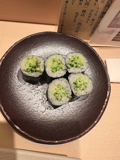 皆さまご機嫌よ〜✨✨ヒナでございます🐥💕💕 お寿司屋さんで必ず頼む、大好きなカッパ巻き😍 しかしこれは、初でした!!笑めちゃきゅうり細かくしてくれてるやん🥒 これぞ職人技✨✨ ごちそうさまでした😋感謝✨感謝✨ 追伸・1個は我慢できなくて、写真撮る前に食べちゃった😅笑