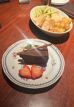 こんばんは🌙 今日は20:30から出勤です🥂💞 この前食べたガトーショコラめちゃめちゃ美味しかったー♡♡♡ いちごも❤️でかわいい〜!🍓