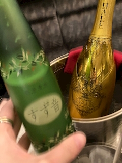 写真ブレッブレ笑笑 すず音はじめて飲んだー! スパークリング日本酒! めちゃ飲みやすくて美味しかった! 飲んだことないお酒飲めるの嬉しい😎😎 バレンタインのお返しの🍾も ありがとうございました🙏🏻💓!! りこぴん