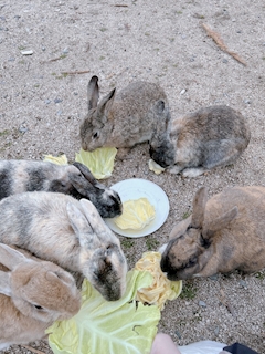 ♡ こんばんは🌙 まふゆです☃️🤍 昨日、今日で広島県にある大久野島に行きました🛳️野生のうさぎが600羽ほどが生息しているのでうさぎの島と呼ばれてます🐰🤍 どこを見てもうさぎがいててとっても癒されました🥰 餌やりするとたくさん集まってくれます♡ 鼻と口のこのアングルが好き🐰 山の上のうさぎさん🐇 今の季節だけの子うさぎもたくさんですっごく可愛かったです😳💕 うさぎの鼻くソフトクリーム🍦とうさんちゅ珈琲☕️名前がすごいですが美味しかったです✨ うさぎが好きな方はぜひ遊びに行ってみてください🤍大好きなうさぎをたくさん摂取できたので明日からも頑張っていきます❤️🔥 来週は月曜日から木曜日まで出勤予定です🙌🏻よろしくお願いします🐰🤍🤍 ♡