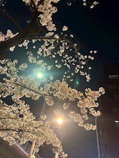 こんにちは🌞わかなです🤍 よくやくダウンはクリーニング出せそう🧥🫧 なぐらいあったかくなりましたね😉ウレシイ!! 帰り道に一瞬だけ1人夜桜🌸笑 お花見行きたいなあ 今週も元気に✨よろしくおねがいします!😉💞